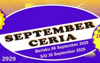 Promo September Ceria Gallery Promo September Ceria Promosi Promo September CeriaBy eri|2020-10-27T07:51:49+07:00September 10th, 2020|Categories: Promosi|0 CommentsRead More